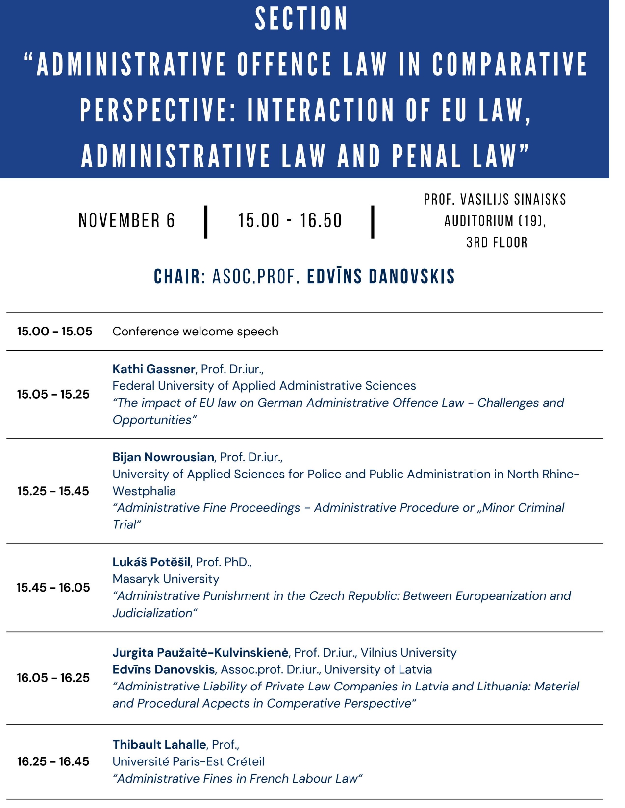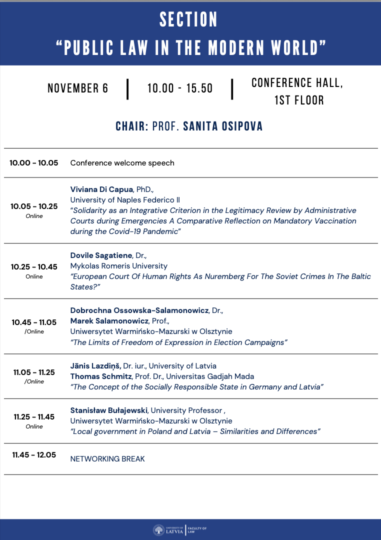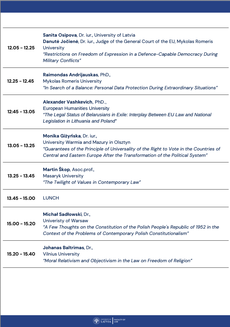 The presentations will address both Latvia’s and Estonia’s experiences in applying EU law and the Brussels I bis Regulation, as well as Ukraine’s and other candidate countries’ perspectives. Special attention will also be given to the impact of the EU Anti-SLAPP Directive on freedom of expression and the right to a fair trial, and to questions concerning the free movement of workers and the harmonisation of financial-sector taxation in an evolving economic landscape.